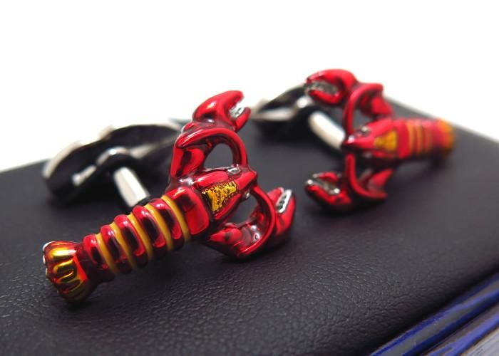 発色のいい赤のエナメルと、差し色のゴールドがなんとも派手なロブスターのカフス。