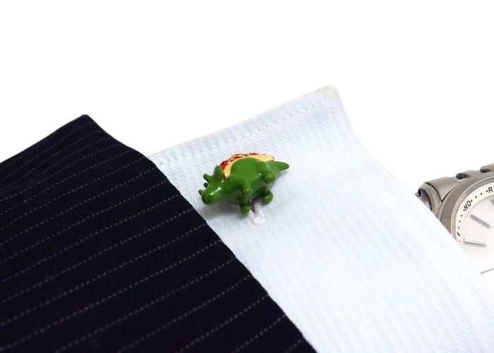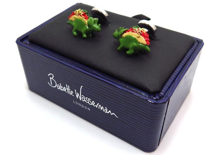 恐竜の背中にタコスがサンドされた奇抜なデザインのカフス。