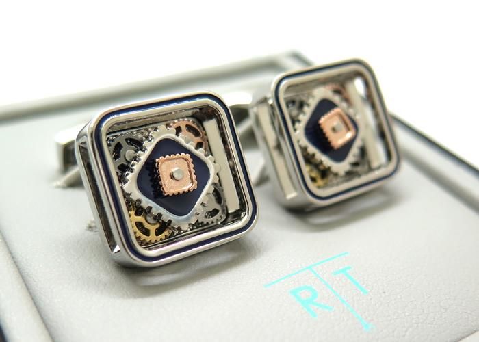 MECHANICAL MAXI GEAR BLUE ENAMEL CUFFLINKS