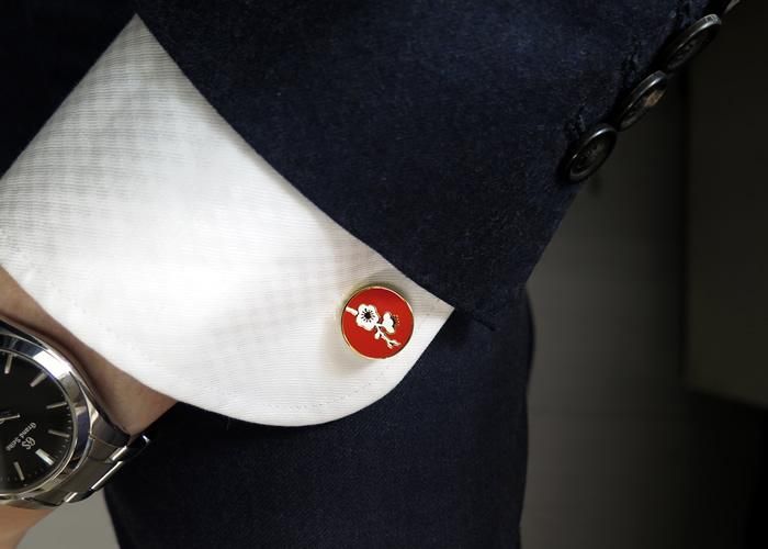 このカフリンクスは、バーントシェンナの色合いがあなたのスタイルを引き立て、個性的でスタイリッシュな印象を与えてくれるでしょう。レッド、イエローゴールドプレーテッドブロッサムカフリンクスは、印象的な新定番アイテムです。