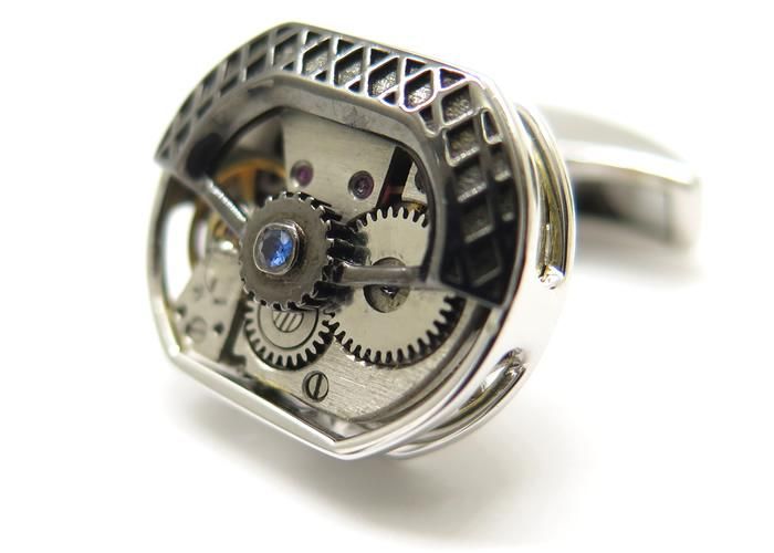 TATEOSSIAN(タテオシアン) トノー スケルトン シルバー カフス(ロジウム、ブラックロジウム&サファイア) 世界限定300セット(カフスボタン/カフリンクス) - ブランドの画像