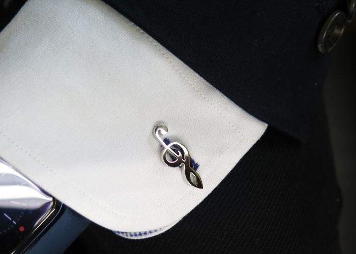 ト音記号と八分音符がセットになった左右のデザインが異なるカフス。楽器モチーフのカフスと組み合わせて左右の違いで個性を出してみたり、シンプルなデザインを生かした使い方もおすすめです。