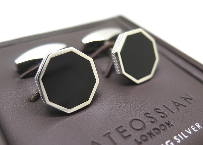 ロンドンの象徴的なランドマークからインスパイアを受けた多様なデザインの「ロンドンアイ」カフリンクス。オクタゴンの形状、1ミクロンのロジウムコーティングを施したスターリングシルバー、光沢仕上げ、ブラックオニキスのストーンが特徴です。 「ロンドン・アイ」カフリンクスは、ロンドンの建築シンボルの精神をユニークなスタイルで表現しています。