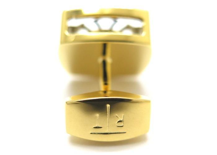 「トラベラー・トゥールビヨン」カフリンクスと共にエレガンスの旅に出かけましょう。やや丸みを帯びた正方形のカフスは、タテオシアンの熟練技を示し、サンドブラスト加工の背景に磨きのかかったケースが特徴です。中心には時計の緻密な機械を思わせる小さなトゥールビヨンがあり、回転するギアが探求の精神を象徴しています。イエローゴールドメッキで提供され、洗練と機械の融合を高く評価する現代の探検家のための一品です。