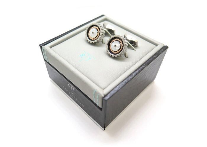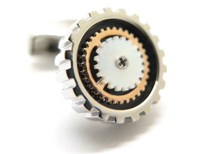 MECHANICAL ROTARE GEAR PALLADIUM & ROSE GOLD WITH MOP CUFFLINKS