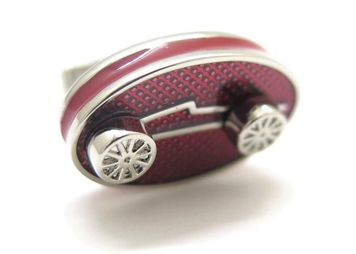ENAMEL SPORTS ICE RACING CAR PALLADIUM & RED ENAMEL CUFFLINKS