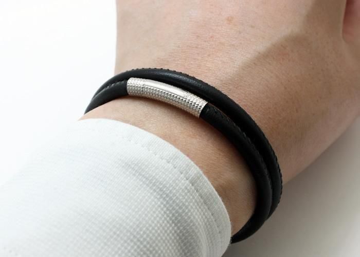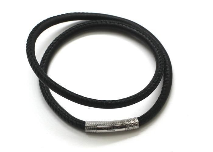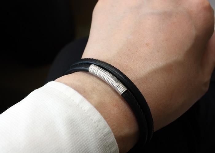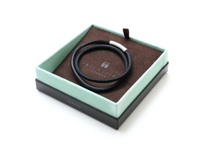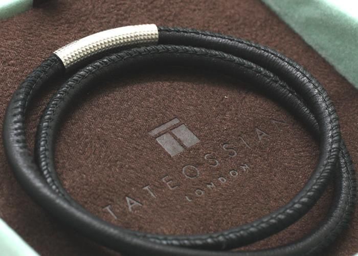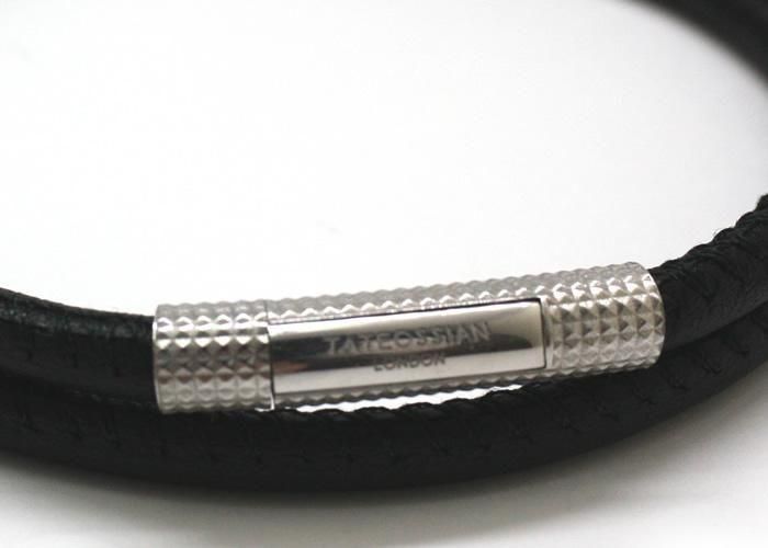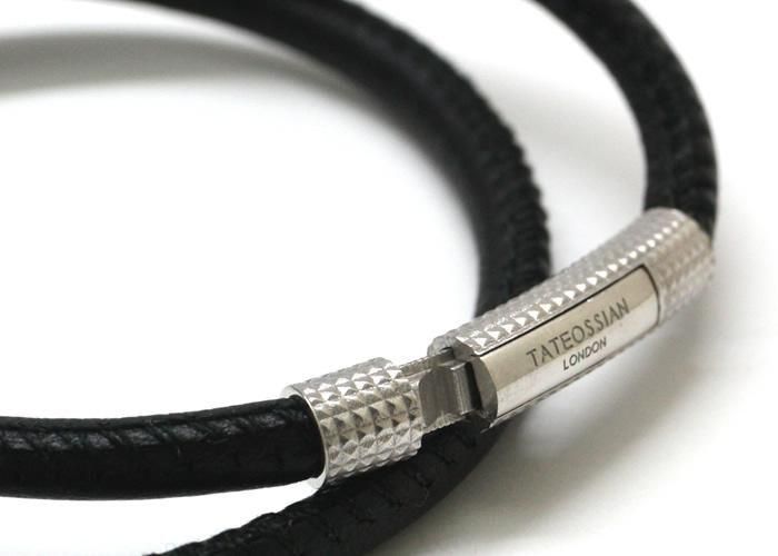 TATEOSSIAN(タテオシアン)レザー シルバー ギザ クリック イントレチャート ペッレ ブレスレット(ロジウム&ブラック)(Mサイズ) - ブランド
