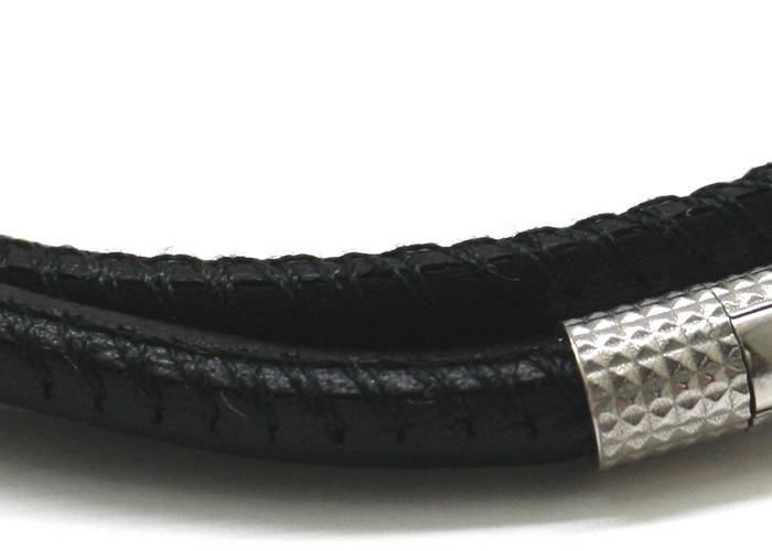 TATEOSSIAN(タテオシアン)レザー シルバー ギザ クリック イントレチャート ペッレ ブレスレット(ロジウム&ブラック)(Mサイズ) - ブランドの画像