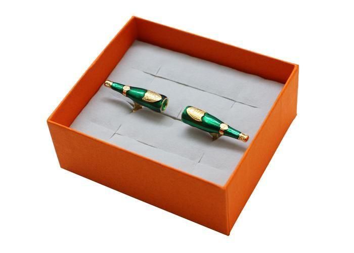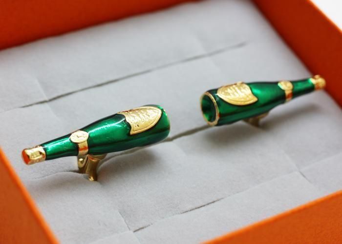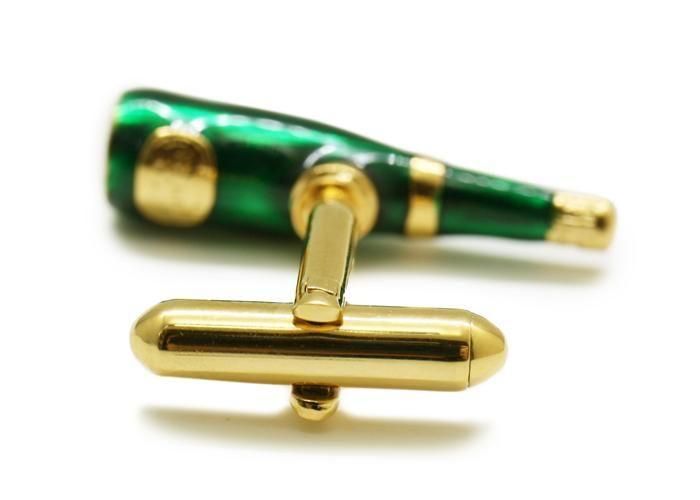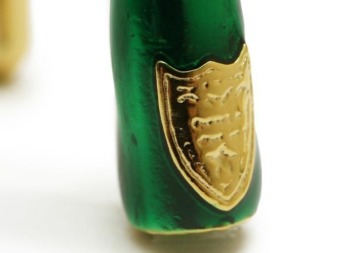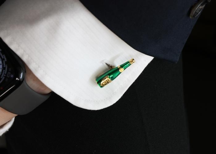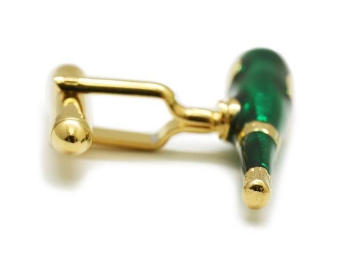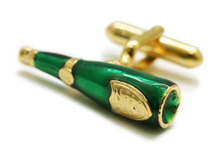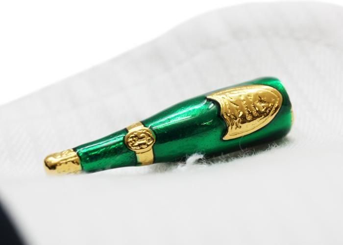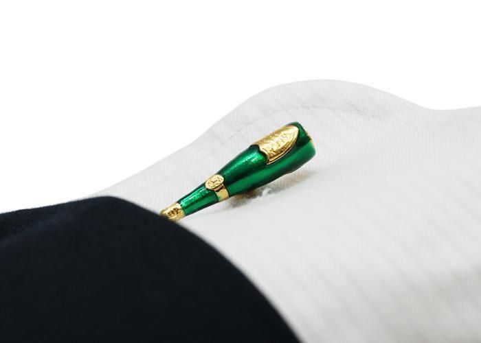 ワインボトルをデザインしたカフス。底のヘコミとギザギザや裏側の見えないラベルまで忠実に再現されています。ゴールドのアクセントが袖のワンポイントにもピッタリです。ワインが好きな方やワインに関わるお仕事をされている方へのオシャレなギフトはいかがでしょうか。