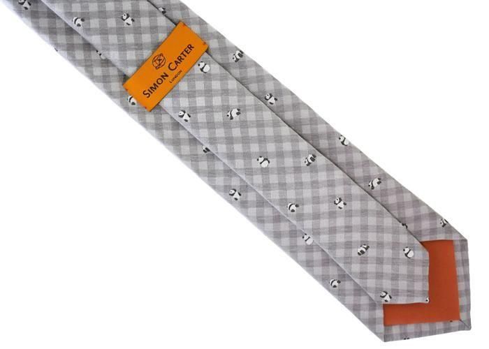 SIMON CARTER(サイモンカーター) パンダ ギンガムチェック シルク ネクタイ(グレーシルバー)(ネクタイ/タイ) - ブランド