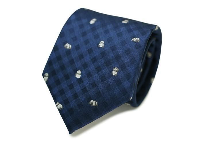 PANDA GINGHAM CHECK NAVY BLUE SILK TIE