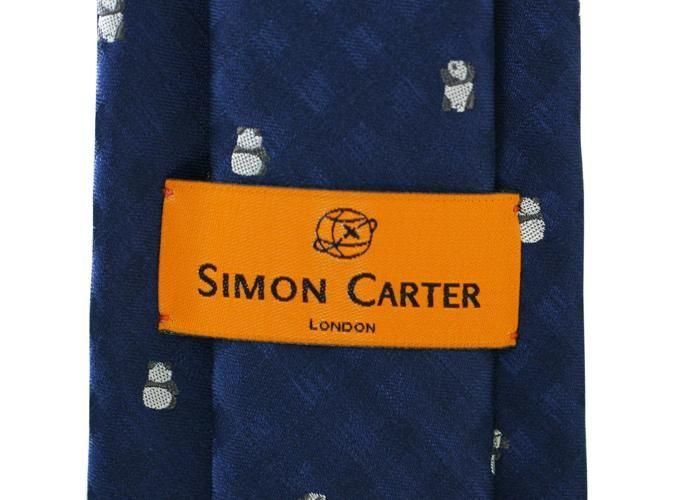 SIMON CARTER(サイモンカーター)  パンダ ギンガムチェック シルク ネクタイ(ネイビーブルー)(ネクタイ/タイ) - ブランドの画像