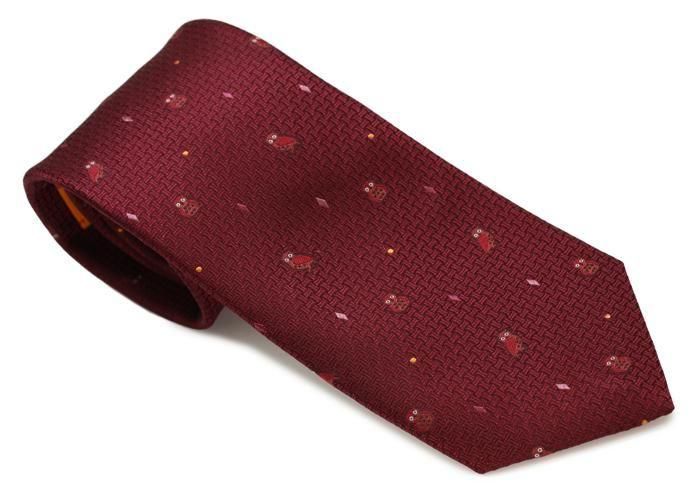 OWL WICKERWORK PATTERN WINE RED SILK TIE
