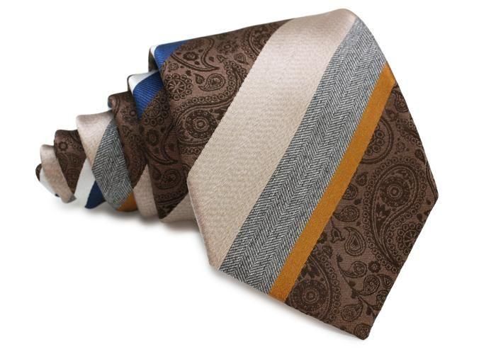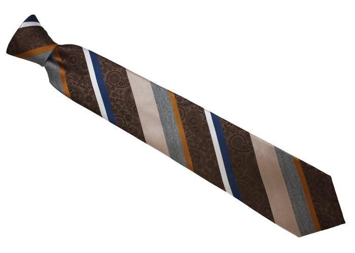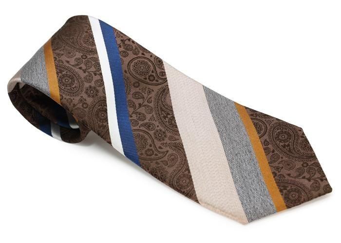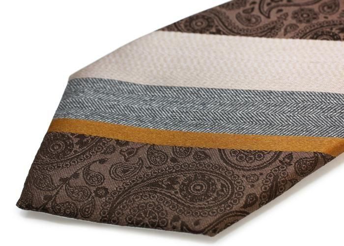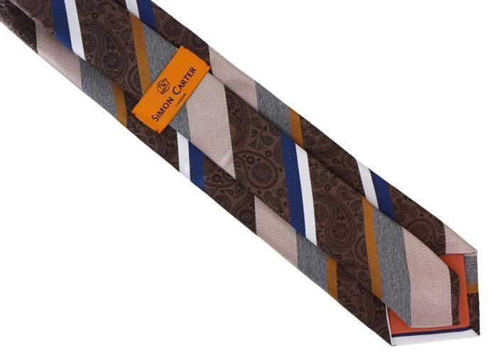 SIMON CARTER(サイモンカーター) ペイズリー ストライプ シルク ネクタイ(ブラウン)(ネクタイ/タイ) - ブランド