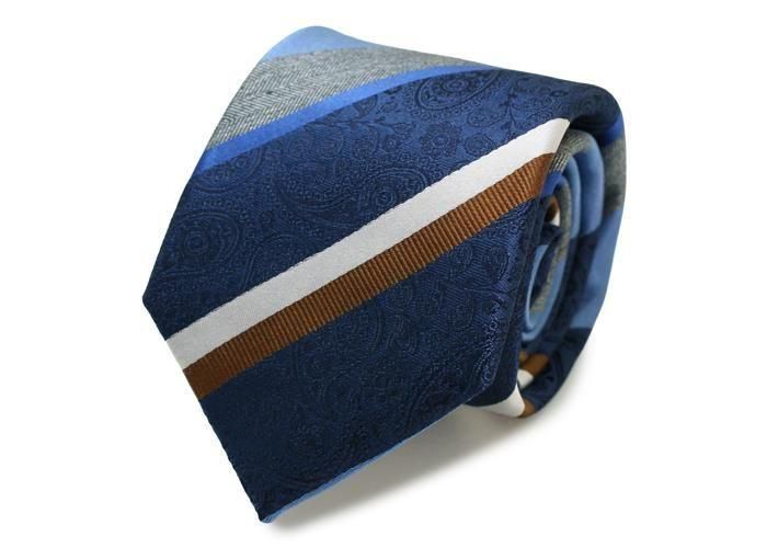 PAISLEY STRIPE NAVY BLUE SILK TIE