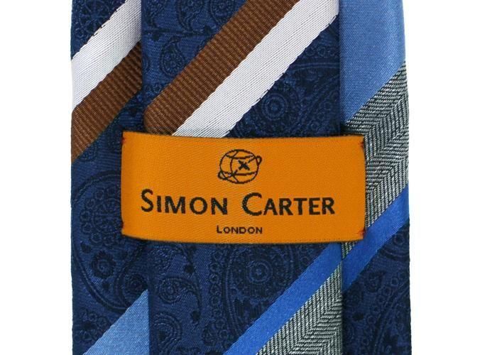 SIMON CARTER(サイモンカーター) ペイズリー ストライプ シルク ネクタイ(ネイビーブルー)(ネクタイ/タイ) - ブランド