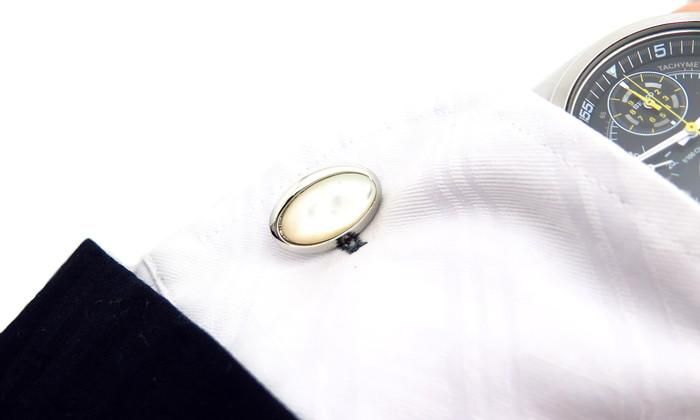 白蝶貝をドーム型に加工し、土台は楕円形でより滑らかさを強調されたシンプルなデザインカフス。